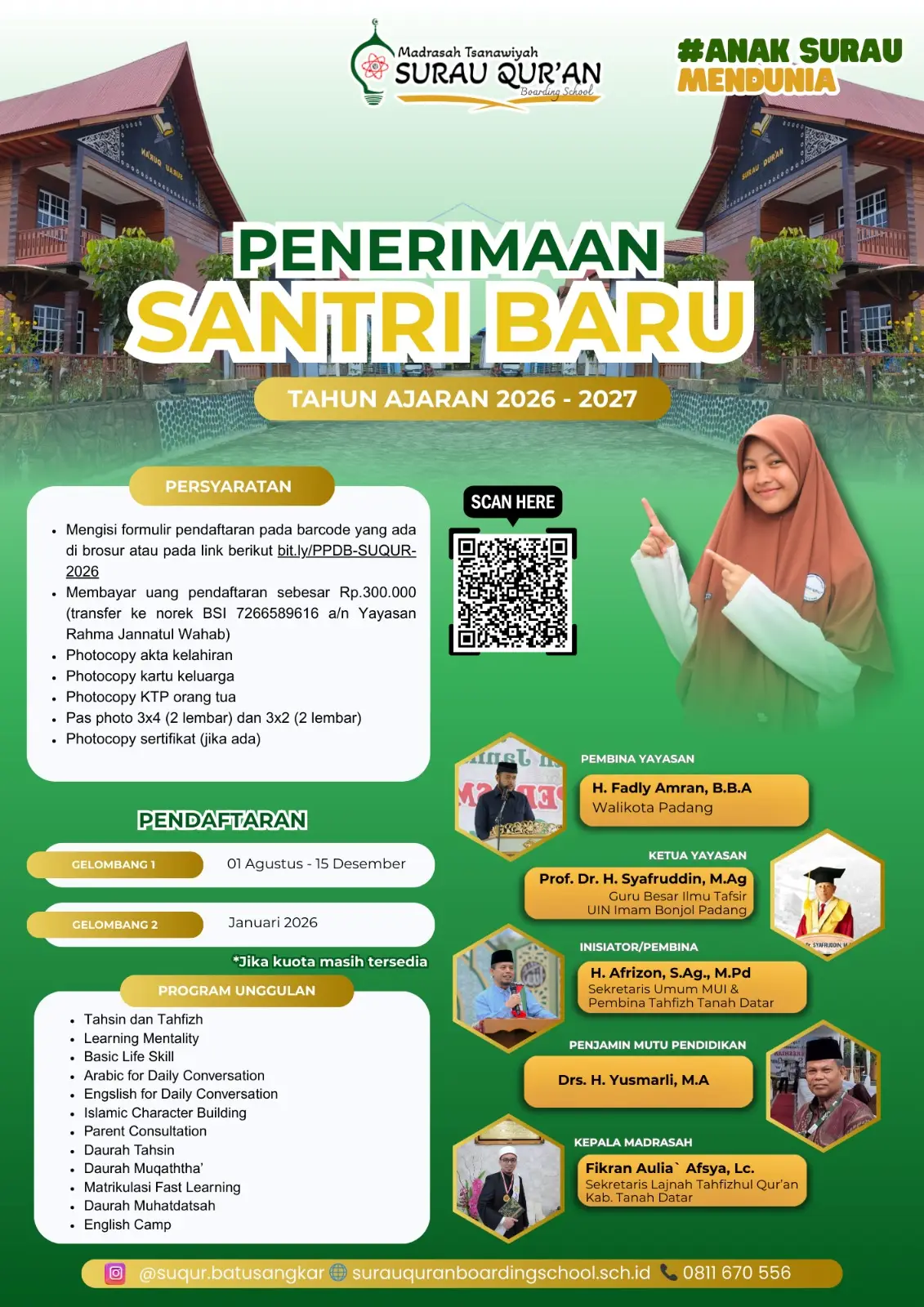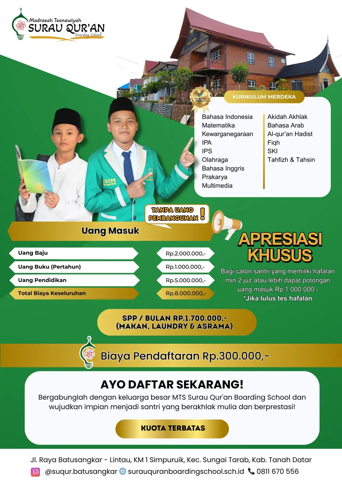 MTs Surau Qur'an Boarding School berkomitmen kuat untuk berkontribusi dalam pembangunan generasi muda di Tanah Datar dan Sumatera Barat.